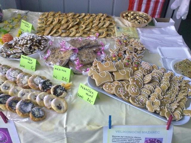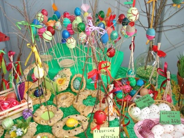 Nabídka velikonočních výrobků: kraslice, vizovické pečivo, koláče, beránky, mazance, pomlázky a další.
