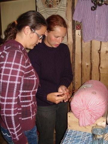 Starosta obdivuje zručnou přadlenu.